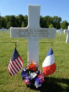 Cpl Jessie C. Lambert was first buried at Temporary American Military Cemetery Solers, France.Source of information: Peter Schouteten, www.abmc.gov, www.findagrave.com, www.wwiimemorial.com, www.ancestry.com - Headstone and Interment Record