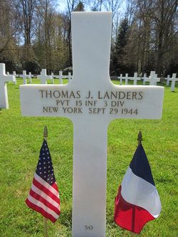 Pvt Thomas J. Landers attended high school for two years and was a messenger boy, employed by United States Copper before he enlisted in New York City, New York on 22 March 1943.Source of information: Leo Minne, www.abmc.gov, www.wwiimemorial.com, www.ancestry.com – 1930/1940 Census / U.S. Headstone and Interment Record / U.S. Draft Cards Young Men / US WW2 Hospital Admission Cards, History 3rd Infantry Division WWII