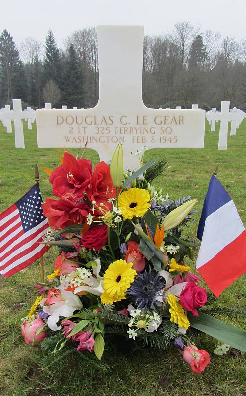 2nd Lt Douglas C. Le Gear was employed at the Perkins Motor Parts Company before he enlisted.He was first buried at the Temporary American Military Cemetery in Solers, France.