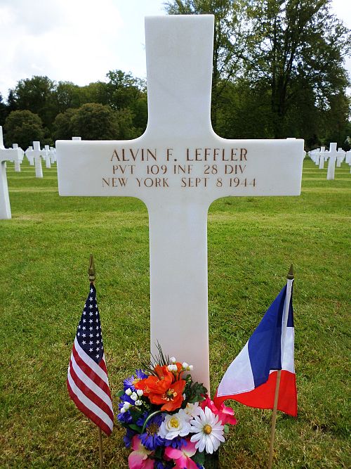 Pvt Alvin F. Leffler attended high school for two years and was a craneman before he enlisted in Buffalo, New York on 20 December 1943.He was first buried at the Temporary American Military Cemetery in Solers, France.