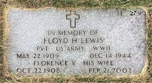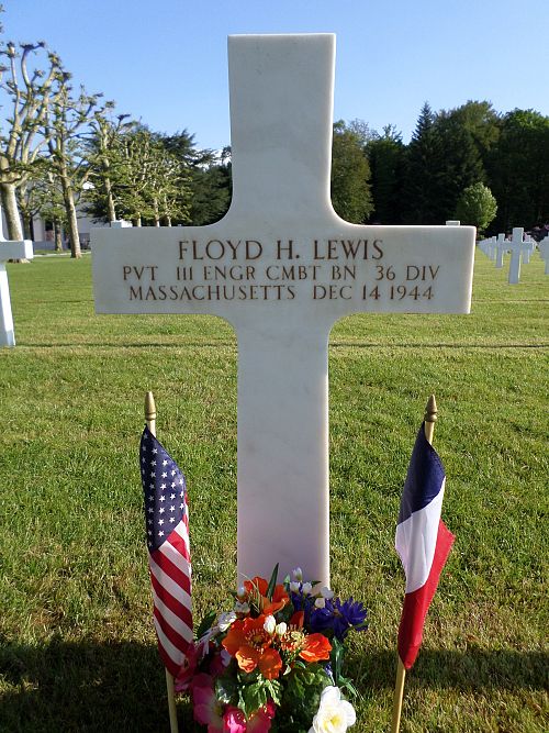 Pvt Floyd H. Lewis was a carpenter before he enlisted in Boston, Massachusetts on 6 December 1943.He is remembered at the Massachusetts National Cemetery in Bourne, Massachusetts.