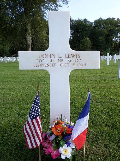 Pfc John L. Lewis enlisted at Fort Oglethorpe, Georgia on 20 October 1943.Source of information: André Koch, www.abmc.gov, www.archives.gov – WWII Enlistment Record, www.ancestry.com - 1930/1940 Census / Headstone and Interment Records / U.S. WWII Draft Cards Young Men, 1940-1947, https://36th-id.frb.io, 36thID-roster-part-1.pdf, 141aar-October-November-1944.pdf