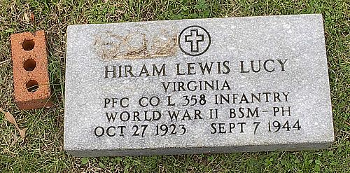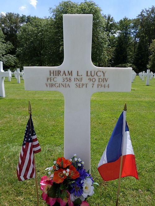 Pfc Hiram L. Lucy attended high school for 1 year and worked on a farm before he enlisted in Petersburg, Virginia on 28 October 1943.He was first buried at the Temporary American Military Cemetery in Champigneul, France.