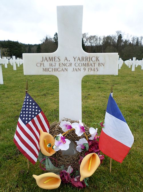 Cpl James A. Yarrick was employed by the National Standard Company.He enlisted on 28 June 1943 and was sent overseas on 1 July 1944.