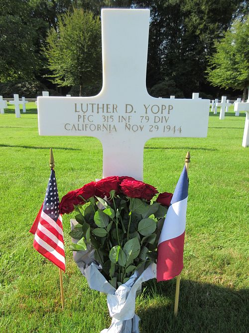 Pfc Luther D. Yopp attended high school for one year and worked on a farm before he enlisted at Fort MacArthur, California on 22 March 1944.He was killed by small arms fire in his chest.