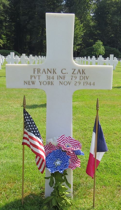 Pvt Frank C. Zak attended high school for four years before he enlisted in New York City, New York on 1 March 1943.He was killed by artillery shell fragments to his chest.