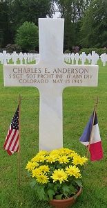 S/Sgt Charles E. Anderson was a driver before he enlisted in Denver, Colorado on 17 December 1943.He was reported wounded in action in April 1945 and died in hospital on 15 May 1945.