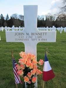 He was a first–rate officer and human being. He was young but he knew how to lead men and he didn’t flinch. He was shot together with his runner by a German machine gun while leading the point of his platoon. The runner was killed instantly and 1st Lt Bennett had three bullet wounds in his lower right side. On the question from Michael Bilder “are you hit Lieutenant?”, his last words where “And How”.