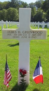 Pfc James H. Greenwood was first buried at Temporary American Military Cemetery Solers, France.Source of information: Peter Schouteten, www.abmc.gov, www.wwiimemorial.com, www.ancestry.com - Headstone and Interment Record / 1920/1940 Census / Family Trees, http://www.ww2-airborne.us