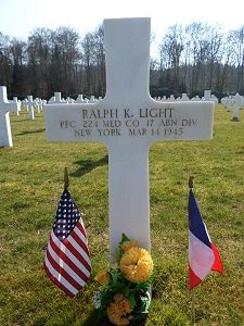 Pfc Ralph K. Light was a driver before he enlisted in Buffalo, New York on 6 April 1943.He was first buried at the Temporary American Military Cemetery of Champigneul, France.