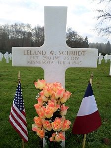 Pvt Leland W. Schmidt enlisted in Fort Snelling, Minnesota on 1 August 1944.He attended high school for 1 year and worked on a farm before he enlisted.
