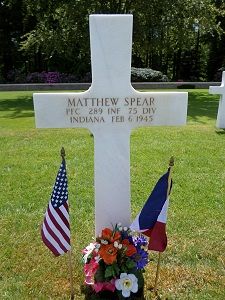 Pfc Matthew Spear enlisted in Fort Benjamin Harrison, Indiana on 25 March 1944.Source of information: Peter Schouteten, www.abmc.gov, www.wwiimemorial.com, www.archives.gov – WWII Enlistment Record, www.ancestry.com - Headstone and Interment Record / Indiana, Birth Certificates, http://75thdivisiondad.com