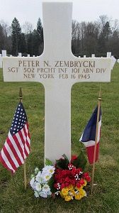 Source of information: Peter Schouteten, Terry Hirsch, www.abmc.gov, www.wwiimemorial.com, www.archives.gov – WWII Enlistment Record, www.ancestry.com - Headstone and Interment Record, http://www.ww2-airborne.us, WWII Draft Card