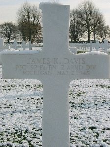 Pfc James K. Davis was a maintenance painter before he joined the Regular Army in Montgomery, Alabama on 7 November 1940.Source of information: Berry Wolf, Raf Dyckmans, Susan Linton, wwiimemorial.com, http://www.abmc.gov/home.php, www.archives.gov - WWII Enlistment Record, http://cgsc.contentdm.oclc.org - After Action Report 92nd Field Artillery Battalion