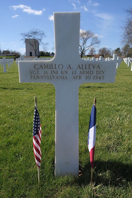 Sgt Camillo A. Alleva attended 4 years of high school and worked as a constructor.He volunteered for the Army of the United States in Philadelphia, Pennsylvania on 27 November 1942.