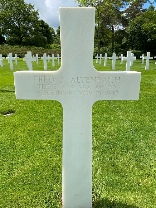 T/5 Fred J. Altenbach graduated from the St. John's Catholic parochial school and was employed by the Weise Auto Company when he was drafted on 30 June 1942. He was sent overseas in July 1943.T/5 Altenbach died in a Jeep accident.