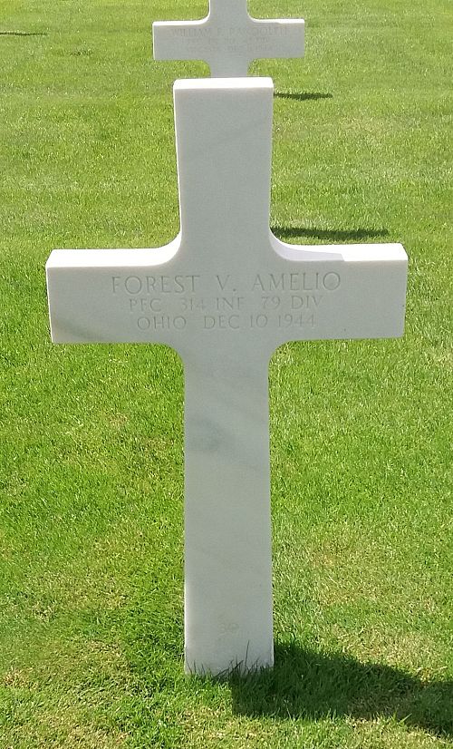 Pfc Forest V. Amelio attended Bryan Elementary High School before he enlisted in Akron, Ohio on 1 December 1942.He was first buried at the Temporary American Military Cemetery in Hochfelden, France.