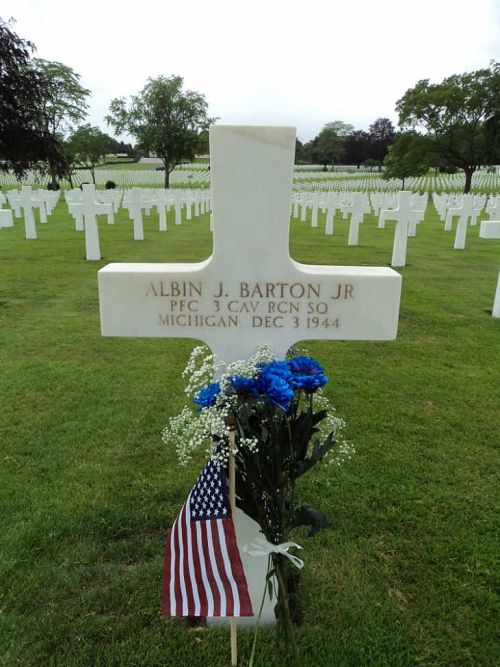 Pfc Albin J. Barton Jr. was employed at C.G. Bridges Construction before he enlisted.He was first buried at the Temporary American Military Cemetery in Limey, France.