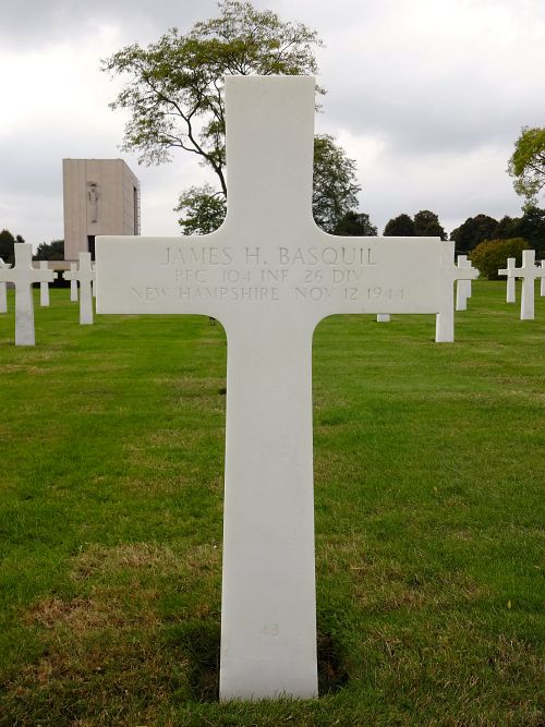 Pfc James H. Basquil attended college for three years before he volunteered for the Army of the United States in Fort Devens, Massachusetts on 22 March 1943.He was wounded by mortar shell fragments on 8 November 1944 and he died on 12 November 1944.