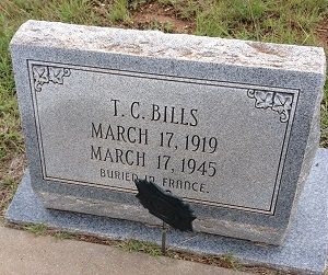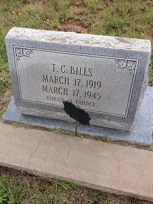 Pvt T. C. Bills is also remembered at the Cemetery of Snyder, Scurry County, Texas.Source of information: André Koch, www.abmc.gov, www.wwiimemorial.com, www.ancestry.com - 1900/1910/1920/1930/1940 Census / U.S. WWII Draft Cards Young Men, 1940-1947/ 142ndaar-.pdf / https://36th-id.frb.io
