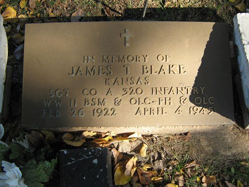 Sgt James T. Blake attended high school for two years and worked in the production of petroleum before he joined the National Guard in Wichita, Kansas on 23 December 1940.He is remembered at the Elmwood Cemetery in Augusta, Butler County, Kansas.