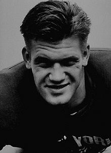 2nd Lt Alfred C. Blozis attended Georgetown University and was a professional football player and track & field star before he enlisted in Newark, New Jersey on 7 December 1943.While on scouting duty in the Vosges Mountains in France in January 1945, he went on a solo mission to find two missing soldiers of his unit and never came back. His body was found in April 1945.