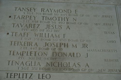 Teaff’s name is recorded on the Walls of the Missing at Netherlands American Cemetery. A rosette will be placed next to his name to indicate he has been accounted for.