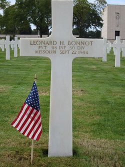 Pvt Leonard H. Bonnot was a music salesman before he enlisted at Jefferson Barracks, Missouri, on 10 December 1943.Source of information: Leo Minne, www.abmc.gov, www.wwiimemorial.com, www.ancestry.com – 1930/1940 Census / U.S. Headstone and Interment Record / U.S. Draft Cards Young Men, www.80thdivision.com
