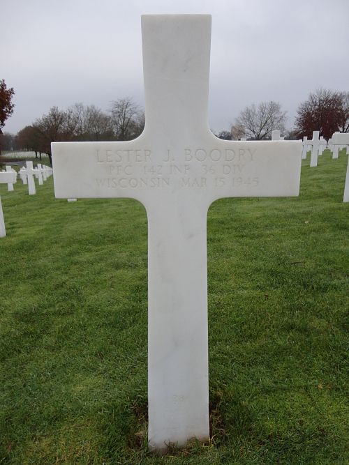 Pfc Lester J. Boodry enlisted at Fort Sheridan, Illinois on 1 March 1942.Source of information: André Koch, www.abmc.gov, www.wwiimemorial.com, www.archives.gov - WWII Enlistment Record, www.ancestry.com - 1920/1930/1940 Census / Headstone and Interment Records / U.S. WWII Draft Cards Young Men