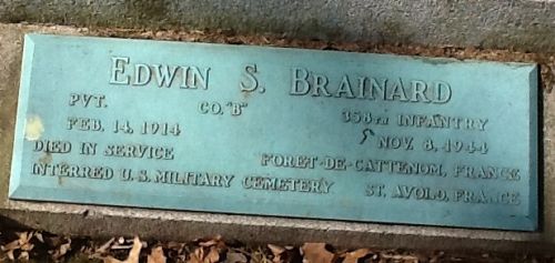 Pvt Edwin S. Brainard attended 1 year of college and was a clerk before he enlisted in Pittsburgh, Pennsylvania on 15 November 1943.He was first buried at the Temporary American Military Cemetery in Limey, France.