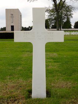 Pfc Ferdie R. Brewer worked at an ore dressing company before he enlisted in Peoria, Illinois on 6 January 1943.Source of information: Leo Minne, www.abmc.gov, www.wwiimemorial.com, www.ancestry.com – 1920/1930 - Census / U.S. Headstone and Interment Record / Kim Pinkston – Di Gangi Family Tree, www.80thdivision.com