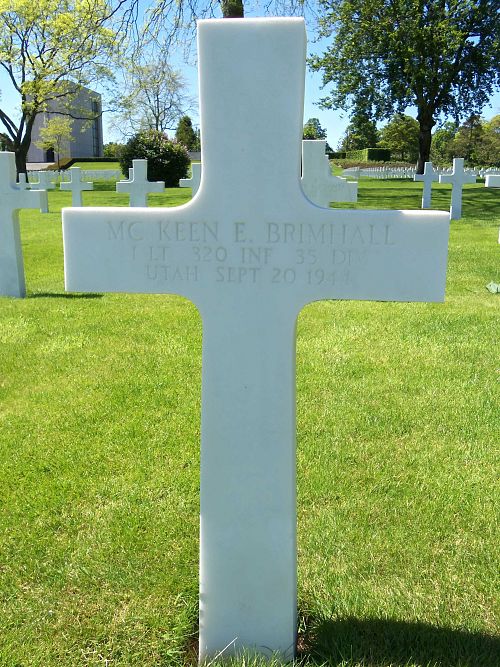 1st Lt Mckeen E. Brimhall attended college for four years and was an industry clerk before he enlisted at Fort Douglas, Utah on 4 June 1942. He was sent overseas in May 1944.He died of wounds sustained in action on 18 September 1944.