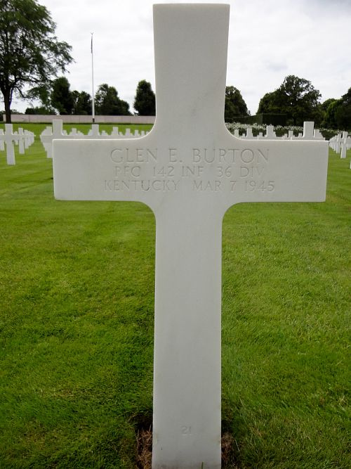 Pfc Glen E. Burton enlisted in Huntington, West Virginia on 22 January 1944.Source of information: André Koch, www.abmc.gov, www.wwiimemorial.com, www.archives.gov - WWII Enlistment Record, www.ancestry.com - 1930/1940 Census / U.S. WWII Draft Cards Young Men, 142ndaar-.pdf / https://36th-id.frb.io