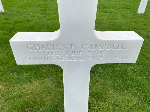 Pfc Charles B. Campbell attended high school for three years and was a shipping clerk employed by the Nucksee Manufacturing Company.He enlisted at Camp Croft, South Carolina on 1 December 1943.