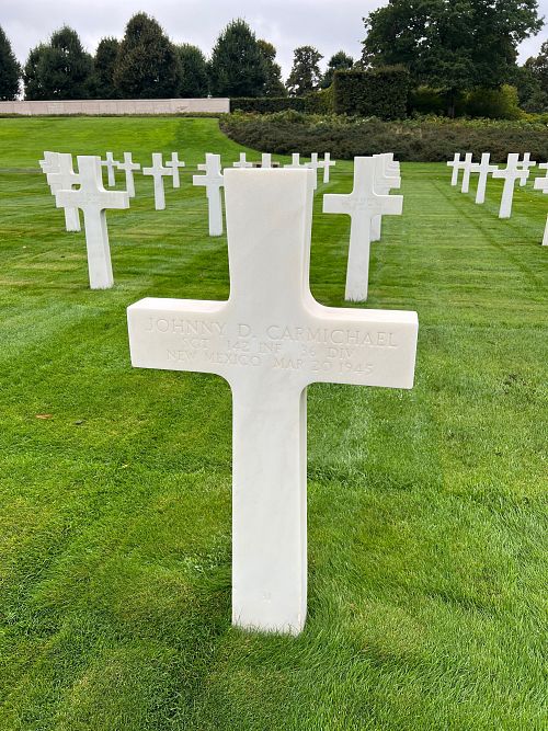 Sgt Johnny D. Carmichael attended high school for three years and was a mechanic before he joined the Regular Army in Santa Fé, New Mexico on 25 November 1941.Source of information: André Koch, www.abmc.gov, www.wwiimemorial.com, www.archives.gov - WWII Enlistment Record, www.ancestry.com - Headstone and Interment Record / 1930 Census / 142ndaar-.pdf, http://36th-id.frb.io