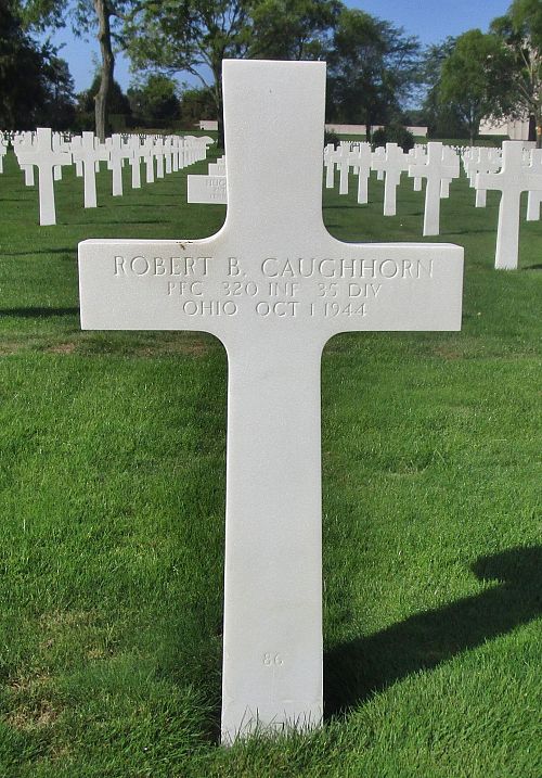 Pfc Robert B. Caughhorn was employed at the Boied Crane Company before he enlisted in Toledo, Ohio on 24 August 1941.He was killed by artillery shell fragments to his head.