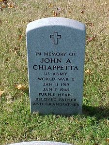 Source of information: Peter Schouteten, www.abmc.gov, www.wwiimemorial.com, www.archives.gov – WWII Enlistment Record, www.ancestry.com - Headstone and Interment Record / Chiappetta Family Tree / 1920/1940 Census, http://www.trailblazersww2.org, www.findagrave.com – Jack Johnson
