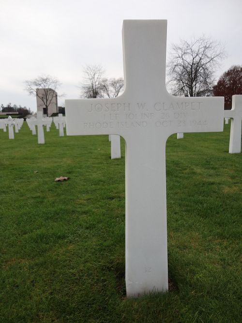 1st Lt Joseph W. Clampet was employed at the Clarragansett Electric Light Company before he enlisted in Providence, Rhode Island on 10 February 1941.He was killed in action by enemy artillery fire.
