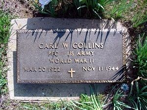Pfc Carl W. Collins enlisted at Jefferson Barracks, Missouri on 8 October 1942,He was first buried at the Temporary American Military Cemetery of Limey, France.