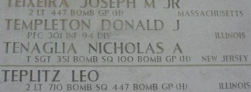 T/Sgt Nicholas Tenaglia was employed at New York Shipbuilding Corporation.He volunteered for the Army of the United States in Camden, New Jersey on 11 September 1942.