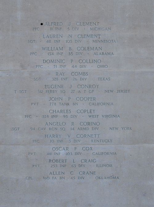 Source of information: Leo Minne, Raf Dyckmans, Terry Hirsch, Peter Schouteten, www.abmc.gov, www.archives.gov – WWII Enlistment Record, www.ancestry.com – 1920/1930 Census / Denny Brock’s Family Tree, "A footsoldier for Patton" - Michael C. Bilder/James G. Bilder, The 5th Infantry division in the ETO, IDPF