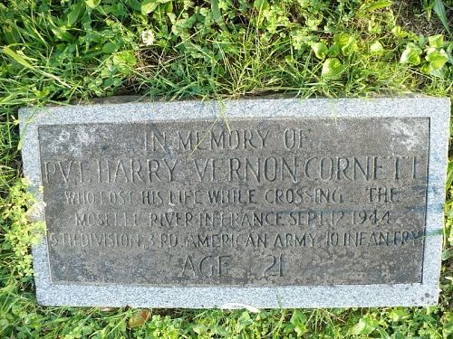 Pfc Cornett is remembered with a memorial marker at Englewood Cemetery in Christopher, Perry County, Kentucky.