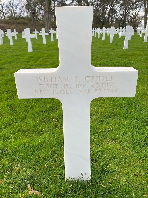 T/Sgt William T. Crider volunteered for the US Army in Fort Dix, New Jersey on 7 December 1940.Source of information: Peter Schouteten, www.abmc.gov, www.wwiimemorial.com, www.archives.gov – WWII Enlistment Record, www.ancestry.com - Headstone and Interment Record / 1930 Census, http://www.45thdivision.org,