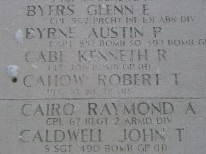 Source of information: Dauglas Cahow, Simon Lerenfort, Peter Schouteten, www.findagrave,com - Des Philippet, www.archives.gov - WWII Enlistment Record, www.in-honored-glory.info/html/stories/ifcahow.htm
