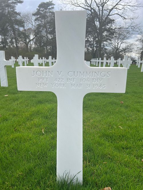 Pvt John V. Cummings attended college and was a clerk.He enlisted in New York City, New York on 30 November 1943.