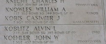 T/Sgt Casimier J. Kobis was a salesman.He volunteered for the Air Corps of the Army of the United States in Boston, Massachusetts on 13 November 1942.