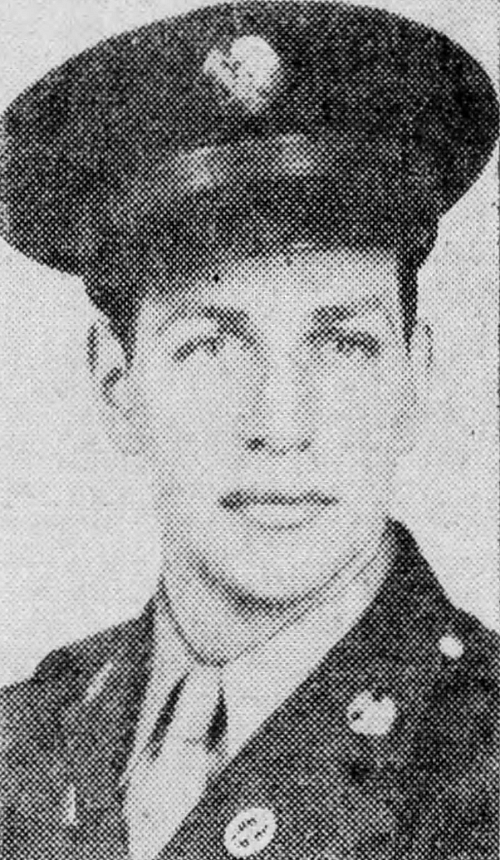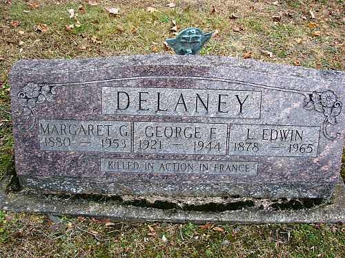 Pvt George F. Delaney graduated from Sayre High School and from Swarthmore College before he joined the U.S. Army Reserve in New Cumberland, Pennsylvania on 1 March 1943. He was assigned to the medical corps and received basic training at Camp Pickett, Virginia. He was later scheduled for entering an engineering college in the ASTP program, when this program was cancelled, just a few days before he was to enter. He then qualified as an aviation cadet and in December 1943 was sent to flight training. This training was also cancelled because of a shortage of infantry personnel.He was sent overseas in September 1944.