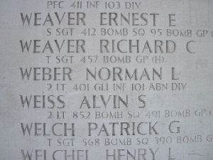 2nd Lt Norman L. Weber graduated from Anderson High School in 1938 and was a student of commercial art at the Indianapolis Art Academy prior to entering the service. He had been employed at Delco-Remy.He is remembered at the Anderson Memorial Park in Anderson, Madison County, Indiana.