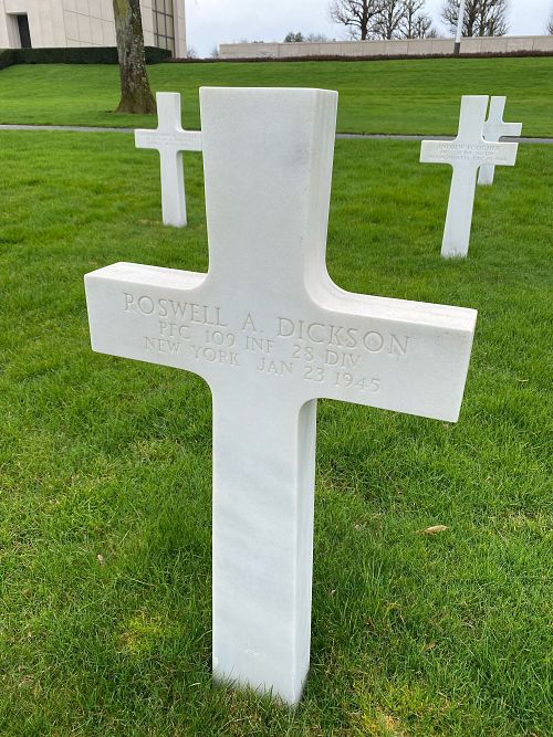 Pfc Roswell A. Dickson enlisted in Albany, New York on 9 December 1942.Source of information: Peter Schouteten, www.abmc.gov, www.wwiimemorial.com, www.archives.gov - WWII Enlistment Record, www.findagrave.com