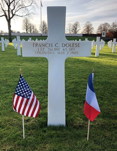 1st Lt Francis C. Dolese graduated from Labadieville High School and attended the Louisiana State University for two years where he had planned to major in agricultural engineering.He joined the U.S. Army Reserve in Baton Rouge, Louisiana on 26 October 1942. He trained at Fort Knox, Kentucky and completed his officer's candidate course at Fort Benning, Georgia where he was commissioned in September 1944. He was sent overseas in Janaury 1945.